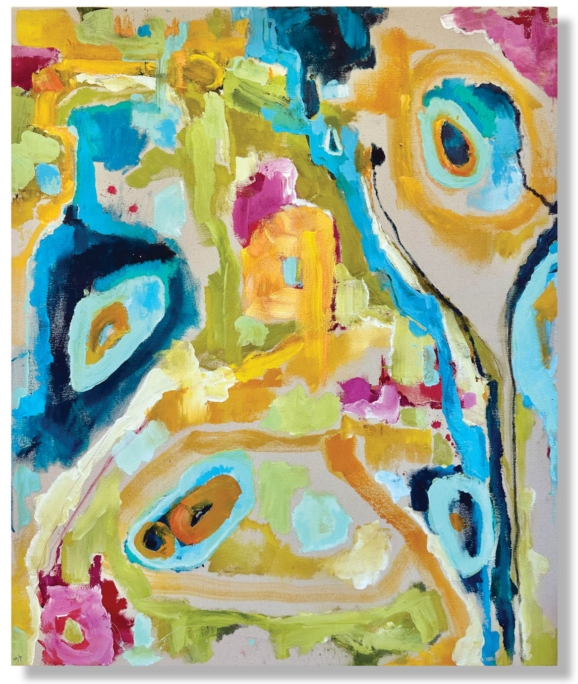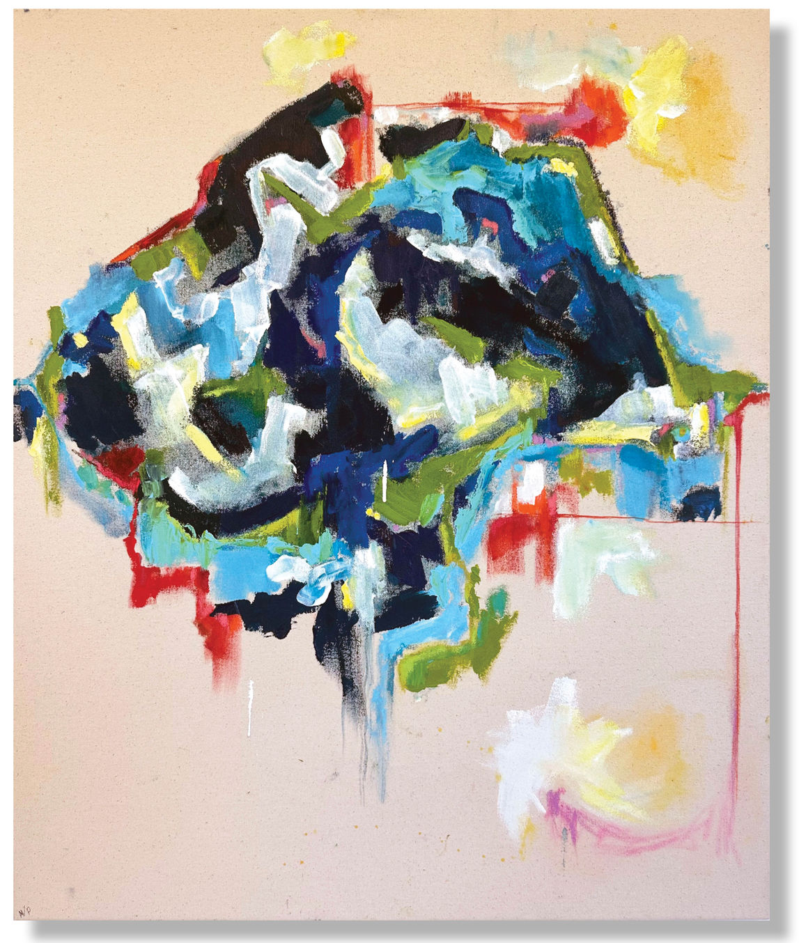 Acrylic, ink, watercolor, and oil pastel on canvas